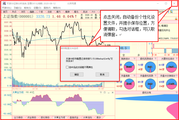 (1)为防止软件程序以外损坏造成个性化配置丢失,退出软件时,会在自动保存配置信息,如图: