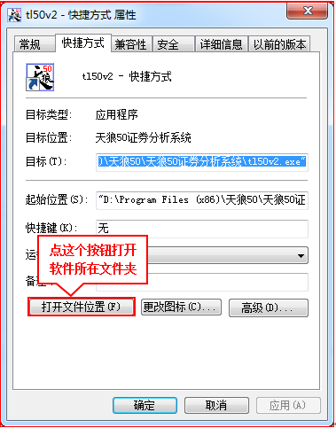 (2)在“属性”菜单中点击“打开文件位置”,可以立即打开软件安装的文件夹。