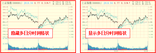 显示多日分时网格:当连续显示多日数据时,显示多日分时网格,图中每30分钟标注出一个虚线方格,用以辅助分析,隐藏则不显示。