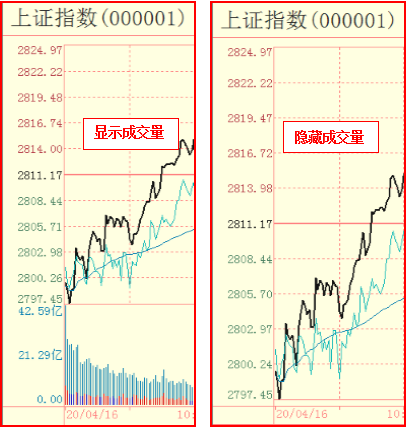 成交量:勾选成交量,图形中会显示成交量信息,不勾选则不显示。
