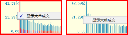 在成交量图形中,右键单击鼠,可选择是否显示大单成交信息。