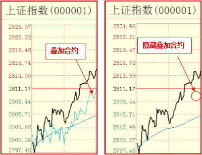 叠加合约:勾选叠加合约,分时图形中会显示所叠加的合约。不勾选,则不显示。这里叠加的合约和期指分析平台合约表中选中的合约一致。