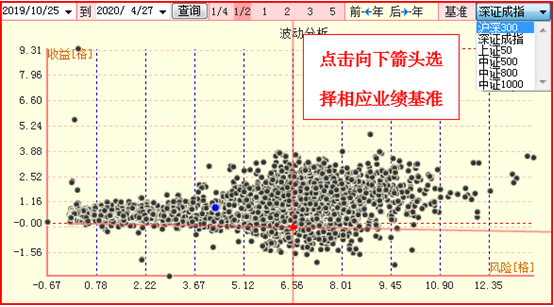 (2)将某支基金设置为业绩基准:在波动分析页面、样本空间、选中样本,先用鼠标左键选中该基金,
