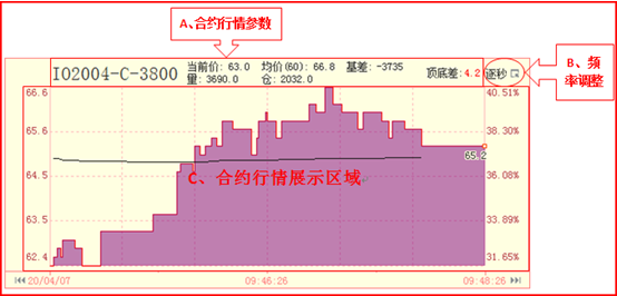 B、标的合约数据栏:显示被选中合约的即时信息。