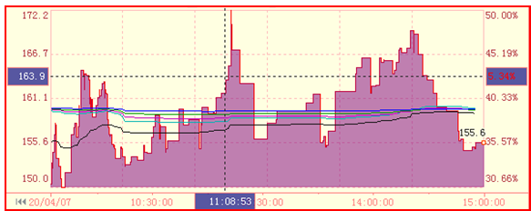 IV、成交量:标的物(沪深300指数)即时成交量。