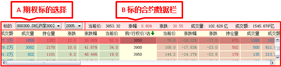 A、期权标的选择:该处可以选择不同的期权合约标的,截止到本版本说明书编写时期指包括:沪