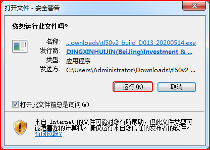 第一步:如果您的电脑安装有杀毒软件会出现如下提示,请放心点击“运行”开始安装软件。