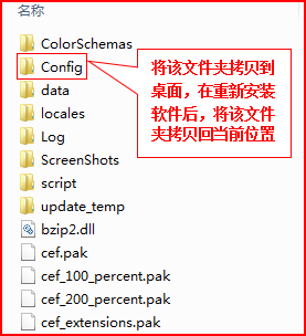 第二步:在安装文件夹里,找到并打开“config”文件夹。先将Config文件夹拷贝到桌面,然后重新安装软件,安装完成后,将保存在桌面的Config文件夹,拷贝回安装目录当前位置。