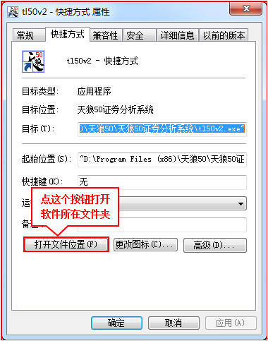 (2)在“属性”菜单中点击“打开文件位置”,可以立即打开软件安装的文件夹。