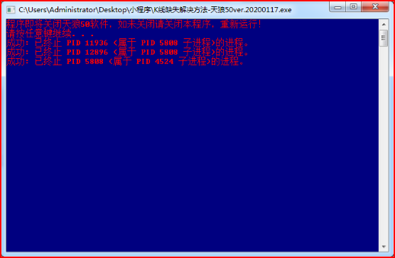 第二步:程序提示软件关闭成功,开始删除DATA进程。