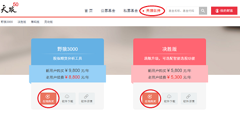 第一步:登录官方网站,点击天狼软件,选择产品点击在线续费。