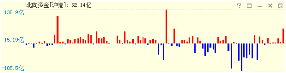 北向资金指标设计为红蓝异形柱,红色代表资金流入,蓝色代表资金流出: