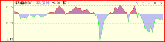 浮动盈利指标设计成围绕 0 坐标轴的一条曲线。指标值为正,曲线和坐标轴之间填充成 红色;指标值为负,曲线和坐标轴之间填充成蓝色: