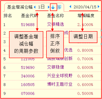 2、基金增减仓幅详细列表信息