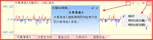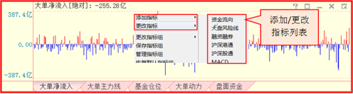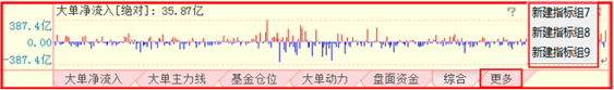 可以更改指标设置,以大单流向指标为例: