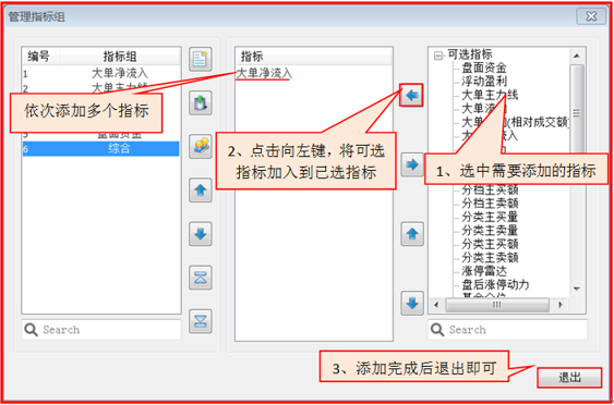6、 将当前被选中的指标组移动到列表顶端