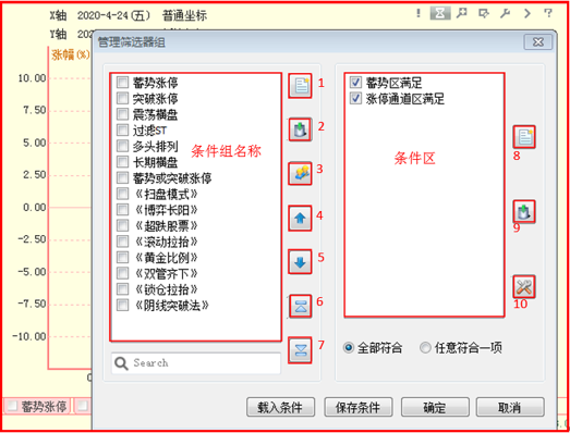 “管理筛选器组”功能键介绍: