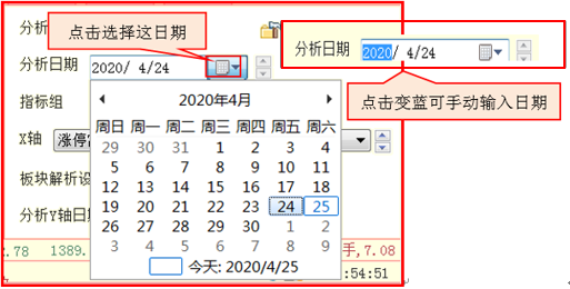 点击“分析日期”文本框上的箭头按钮,可以在弹出的日历中选择分析日期: