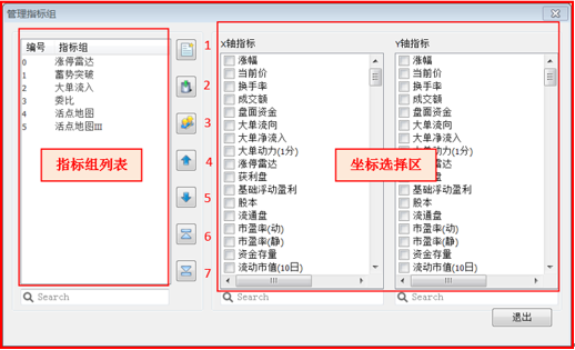 操作方法:新建指标组后再坐标区选择横坐标与纵坐标,选择好后退出,新建指标组。