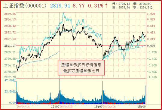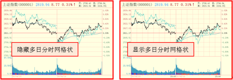 显示多日分时网格:当连续显示多日数据时,显示多日分时网格,图中每30分钟标注出一个虚线方格,用以辅助分析,隐藏则不显示。