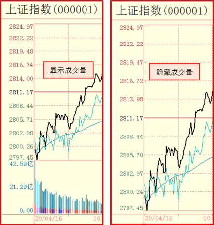 成交量:勾选成交量,图形中会显示成交量信息,不勾选则不显示。