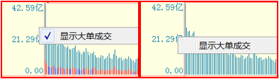 在成交量图形中,右键单击鼠,可选择是否显示大单成交信息。