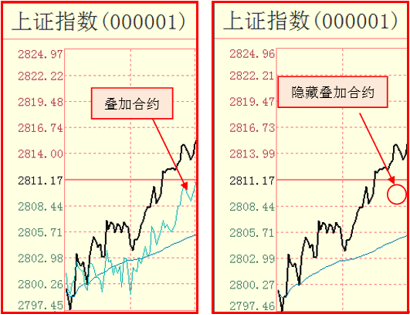 叠加合约:勾选叠加合约,分时图形中会显示所叠加的合约。不勾选,则不显示。这里叠加的合约和期指分析平台合约表中选中的合约一致。(叠加合约功能,仅限天机版、野狼3000版本)。